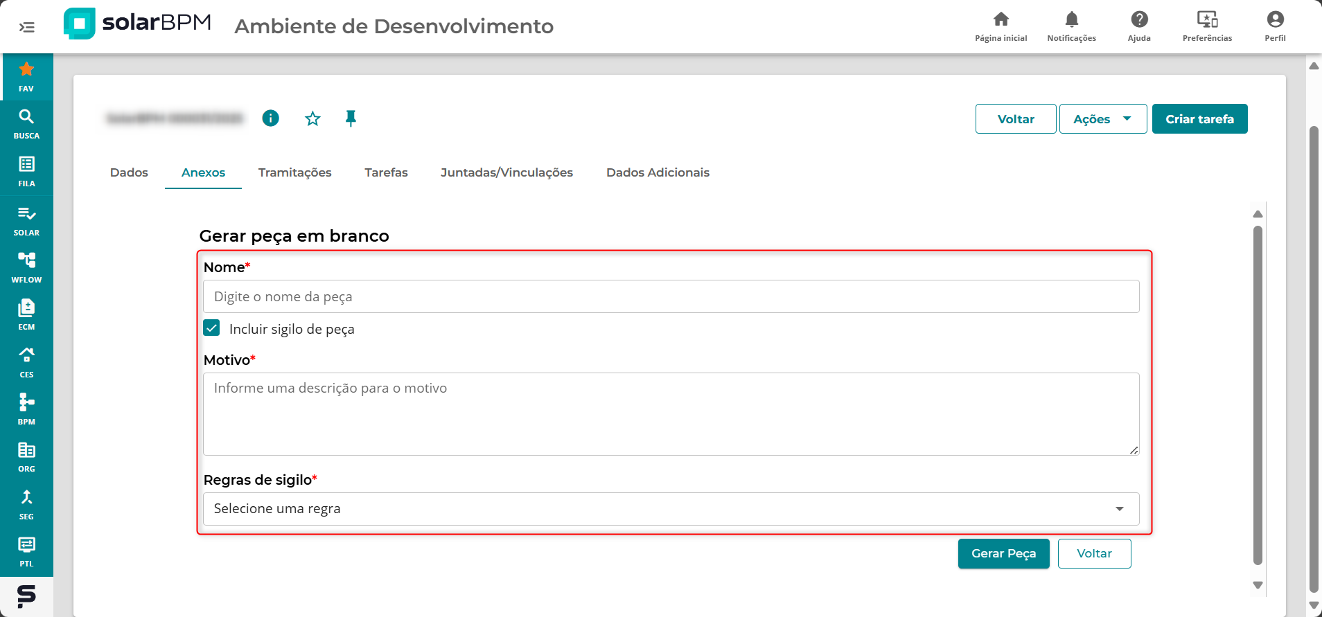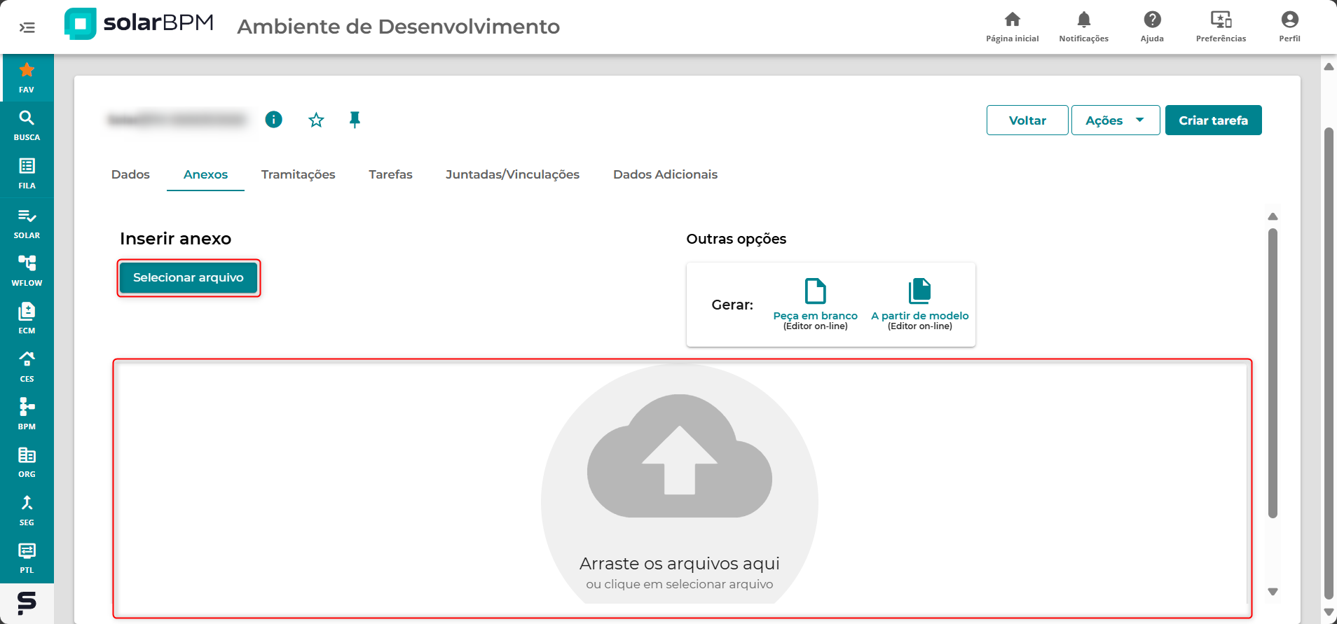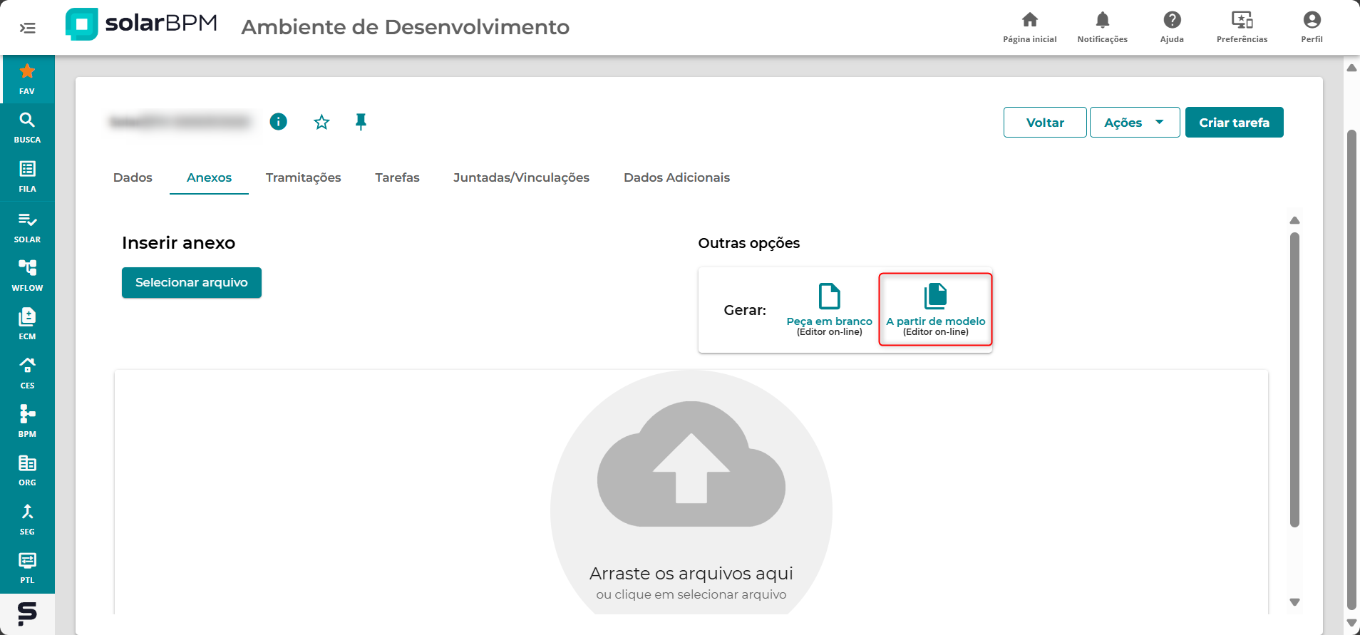 Para inserir anexos a partir de um modelo em branco, siga o passo a passo abaixo:
